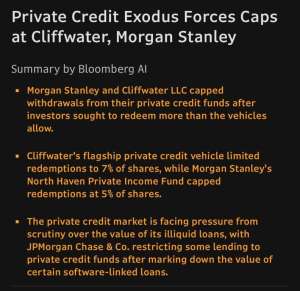 Morgan Stanley (MS) is experiencing a severe liquidity crisis in its Direct Lending segment. This pressure stems from three systemic factors: (i) massive redemptions by Business Development Companies (BDCs), (ii) rapid devaluation of underlying tech assets (notably due to AI disruption), and (iii) margin compression from falling benchmark rates. We anticipate a “Capital Exodus” similar…