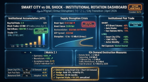 Discrete Accumulation on Smart City ETFs (GRN/CITIES) and Correlation with Oil Demand Destruction