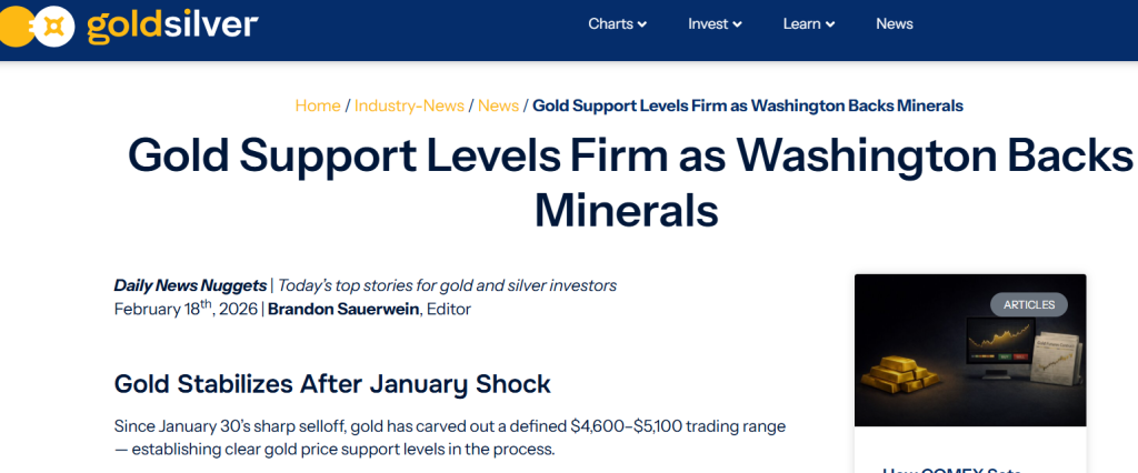 1. Gold Support Levels Firm as Washington Backs Minerals, GoldSilver