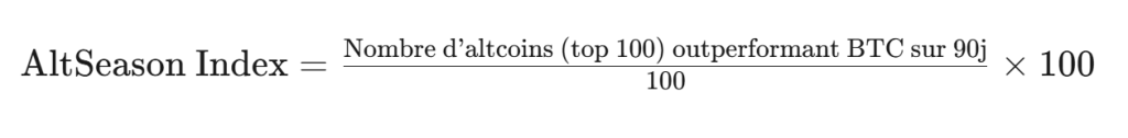 L’Altcoin Season Index de CoinMarketCap est défini comme :