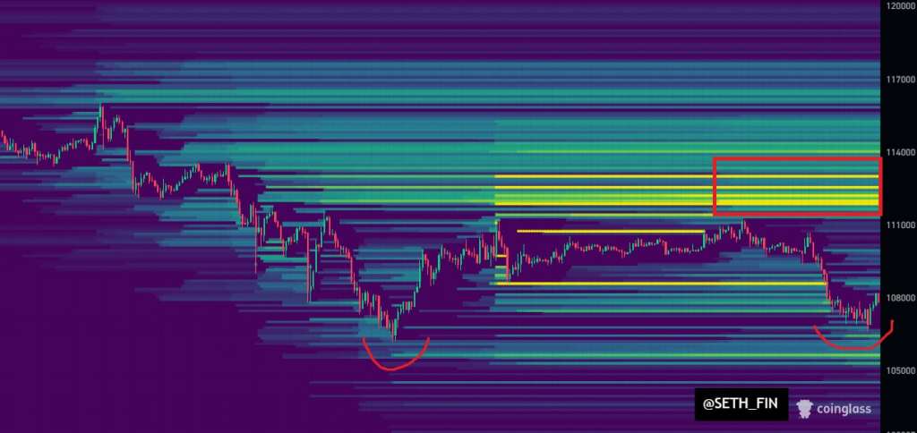 1. Les données de liquidité indiquent une asymétrie favorable à une hausse explosive du BTC : 14 G$ de Shorts à liquider entre 111K–114K US$, servant de carburant pour atteindre la cible des 120K–122K US$.
