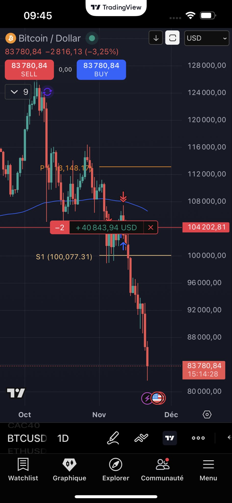 Les actifs sensibles montrent des signes clairs : le Bitcoin (BTC), baromètre de la liquidité, est en rupture sous $84,000 (21-11-2025), pointant vers $68,000-$72,000.