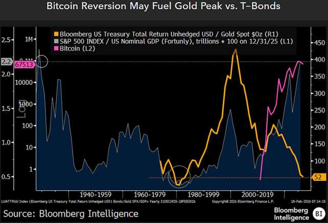 La proposition de Mike McGlone (Bloomberg Intelligence) concernant une potentielle inversion de la corrélation entre Bitcoin (BTC), l'or et les bons du Trésor (T-Bonds) suggère un "Realignment Trade" plutôt qu'une simple rotation "Risk-On/Risk-Off", selon nos modèles quantitatifs (calibrés jusqu'à février 2026). L'analyse des cointégrations et des volatilités croisées montre que la surperformance historique de…