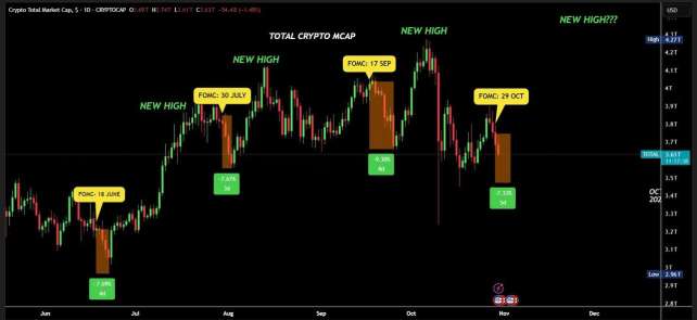 L'observation de la dynamique post-FOMC, avec la chute du Bitcoin à $106,777, est interprétée comme une purge de liquidité cyclique précédant de nouveaux sommets, alignée avec l'analyse structurelle.