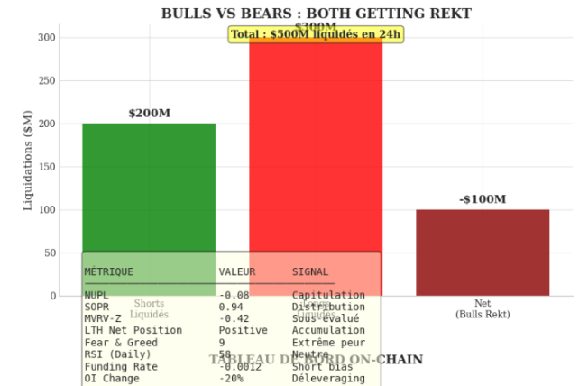 Notre modèle Steelldy signale un régime de marché extrême où les fondamentaux de risque sont baissiers, mais la dynamique des prix est haussière. Le signal technique est un extrême baissier (-91.5), anticipant un effondrement. Cependant, l'analyse on-chain et les flux institutionnels montrent une forte accumulation. Le marché est dans une "Bull Trap" préliminaire, alimentée par…