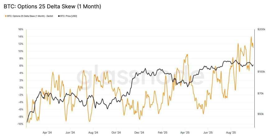 Analyse de marché Cryptos Economie BTC Options 25 Delta Skew (1 Month). Analysis of the 25‑Delta skew shows a net imbalance: the 25‑Delta puts are overpriced and the calls are underpriced, indicating a strong bearish sentiment from the “smart money”octobre 1, 20250CommentsByOleg Turceac
