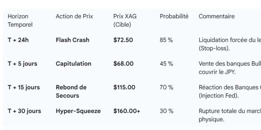 Le 7 janvier 2026, TD Securities a ouvert une position courte sur l'argent (XAG/USD) à 78 $/oz, visant 40 $/oz et avec un stop-loss à 92,50 $/oz. Cette stratégie se basait sur l'hypothèse d'un sommet spéculatif post-silversqueeze d'octobre 2025, anticipant des ventes dues au rééquilibrage des indices BCOM et…