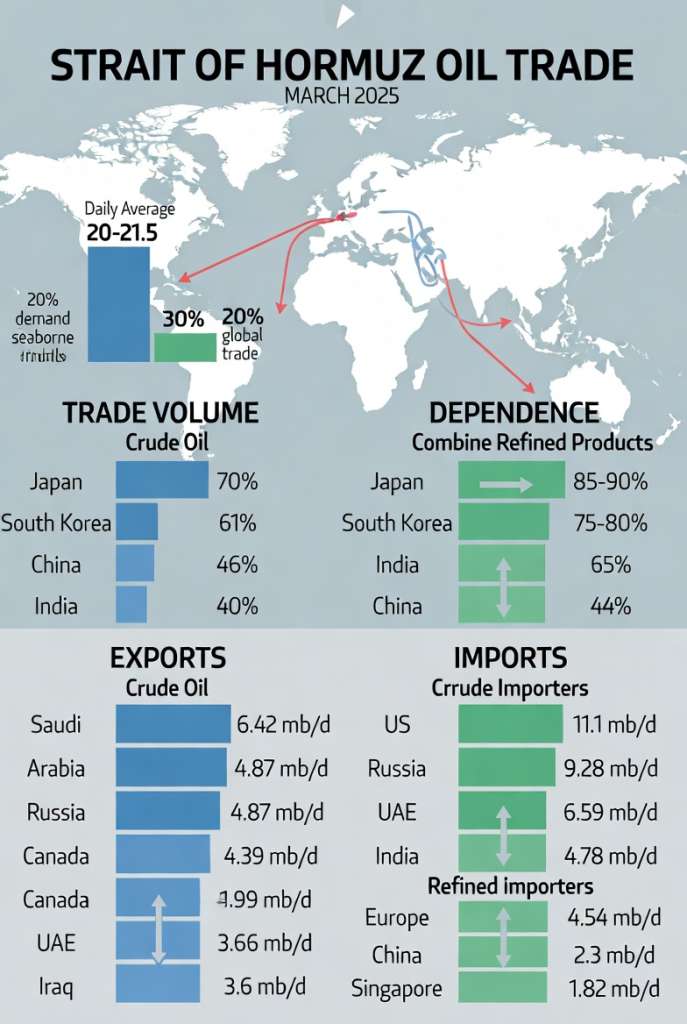 Notre modèle quantitatif de la crise de l’Hormuz simule la dynamique de choc d’offre avec une formule adaptant le pic de Hubbert, où Q 0 est le flux normal (21.5 Mb/j), t shock le début de crise (2 mars 2026), sigma shock la vitesse de disruption (3 jours), et Q alternative la réponse par pipeline (5 Mb/j après 30 jours). Les données du 9 mars 2026 montrent une chute brutale du flux d’Ormuz à moins de 5% du normal, le prix du Brent atteignant 118.22$.
