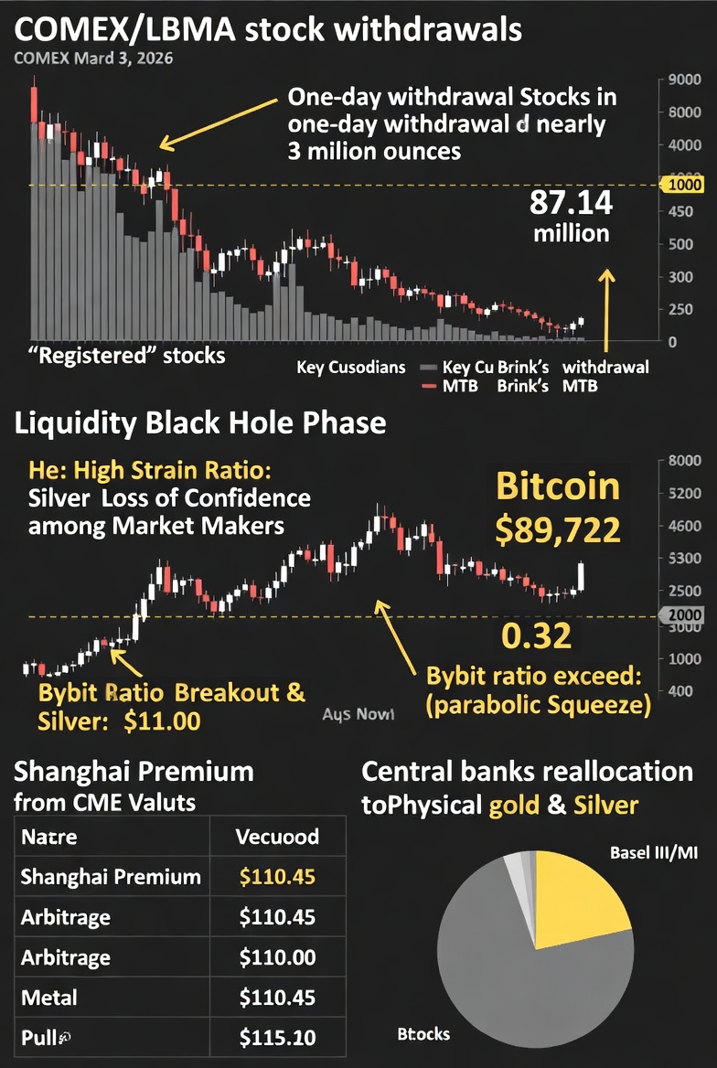 Avec un intérêt ouvert (OI) qui reste élevé malgré les règlements forcés par la Règle 401, le ratio de tension dépasse les limites historiques. Le système est entré dans une phase de « Liquidity Black Hole ». Tout retrait supplémentaire sous la barre des 80M d’onces Registered déclenchera une rupture de la Law of One Price.