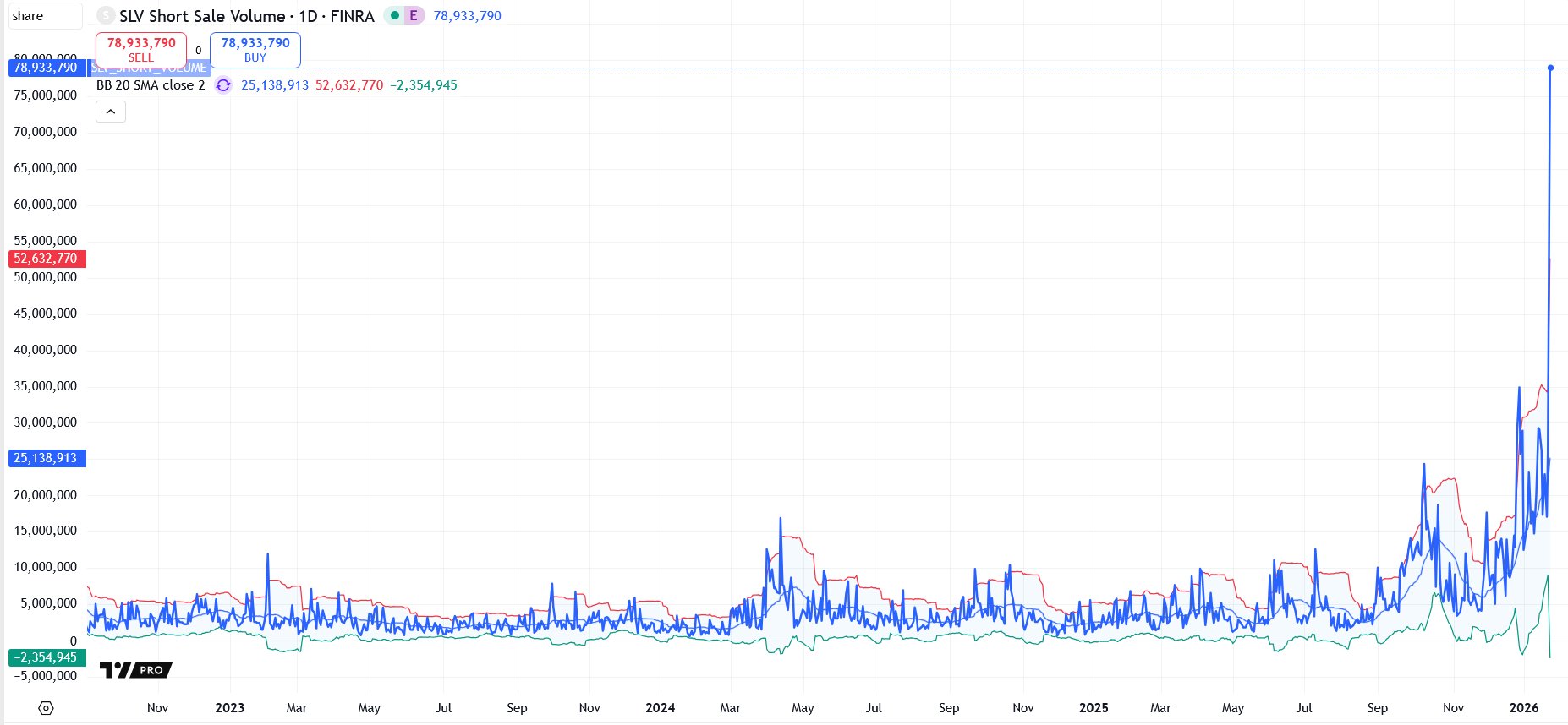 1. Positionnement court extrême sur SLV : 78,9 millions d’actions vendues à découvert, soit trois fois la moyenne des 20 derniers jours.