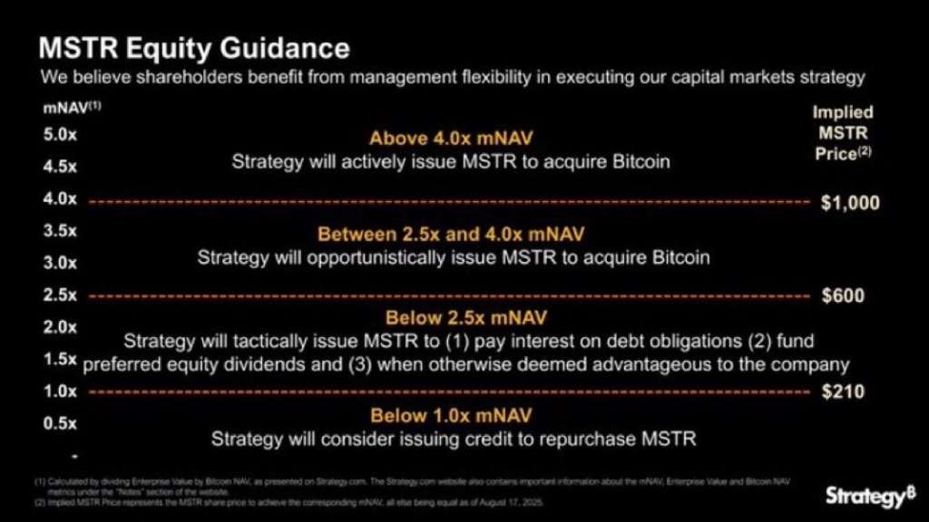 Initialement, MSTR se positionnait comme une « Bitcoin Holding Company » axée sur la préservation de la valeur actionnariale, caractérisée par une prime sur valeur liquidative (NAV) supérieure à 2,5x et une dilution limitée.