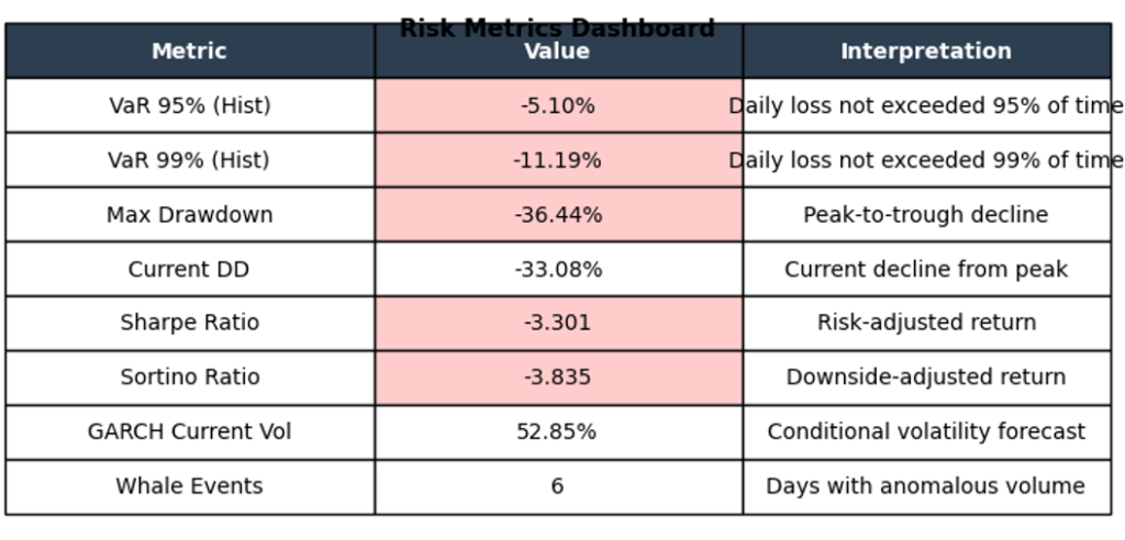 (c) Arbitrage de volatilité. […] des « Strangles » larges pour capturer la décroissance de la volatilité post-capitulation, étant donné le half-life du GARCH estimé à 2 jours.