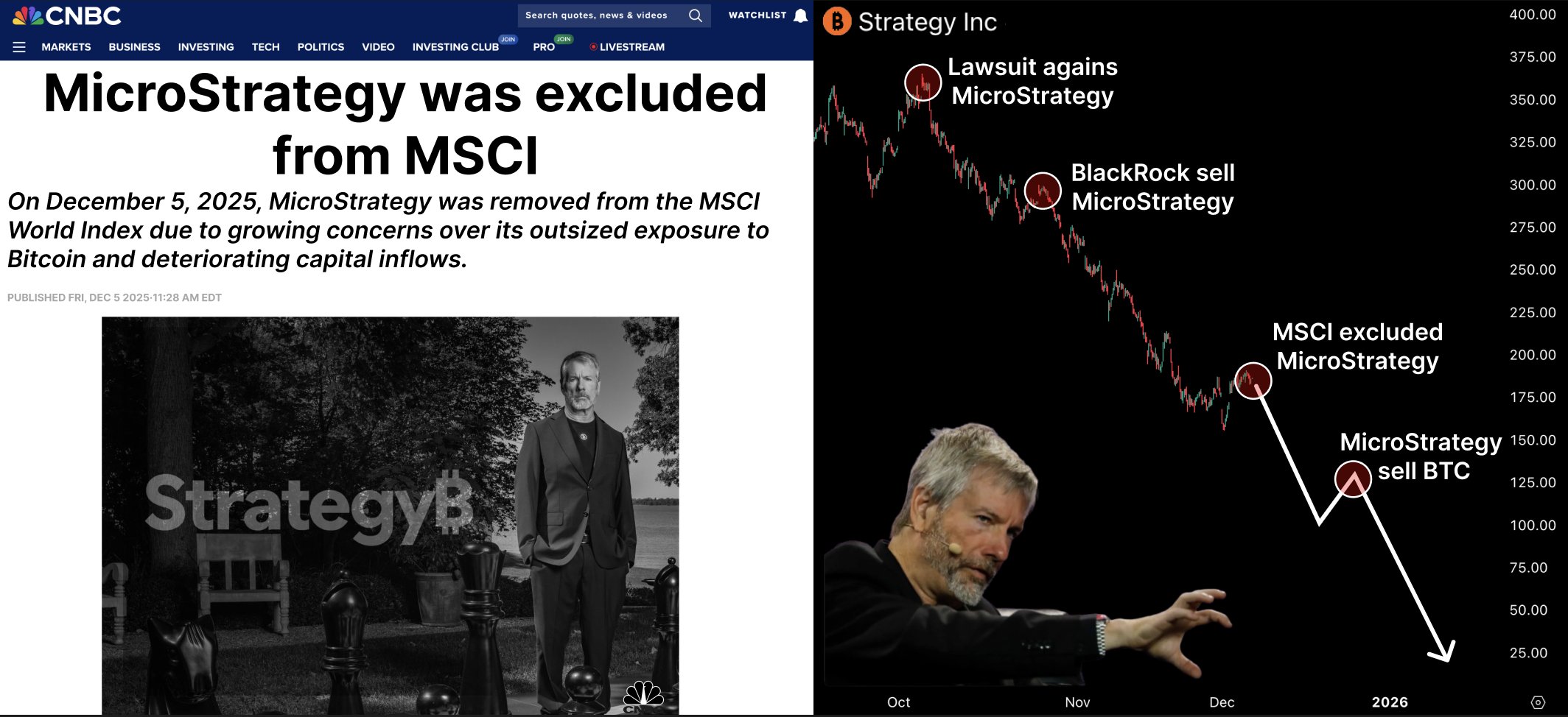 Le rapport JP Morgan du 20 nov. cible uniquement MicroStrategy (MSTR, 100% BTC) concernant les retraits potentiels des sociétés détenant des actifs numériques, ignorant 38 autres entreprises affectées par la règle MSCI 50%. Cela soulève la question d’un ciblage sélectif : MSTR est-elle mise en avant en raison de sa taille, d’une menace concurrentielle pour JPM, ou d’un possible conflit d’intérêts lié à une position courte ?