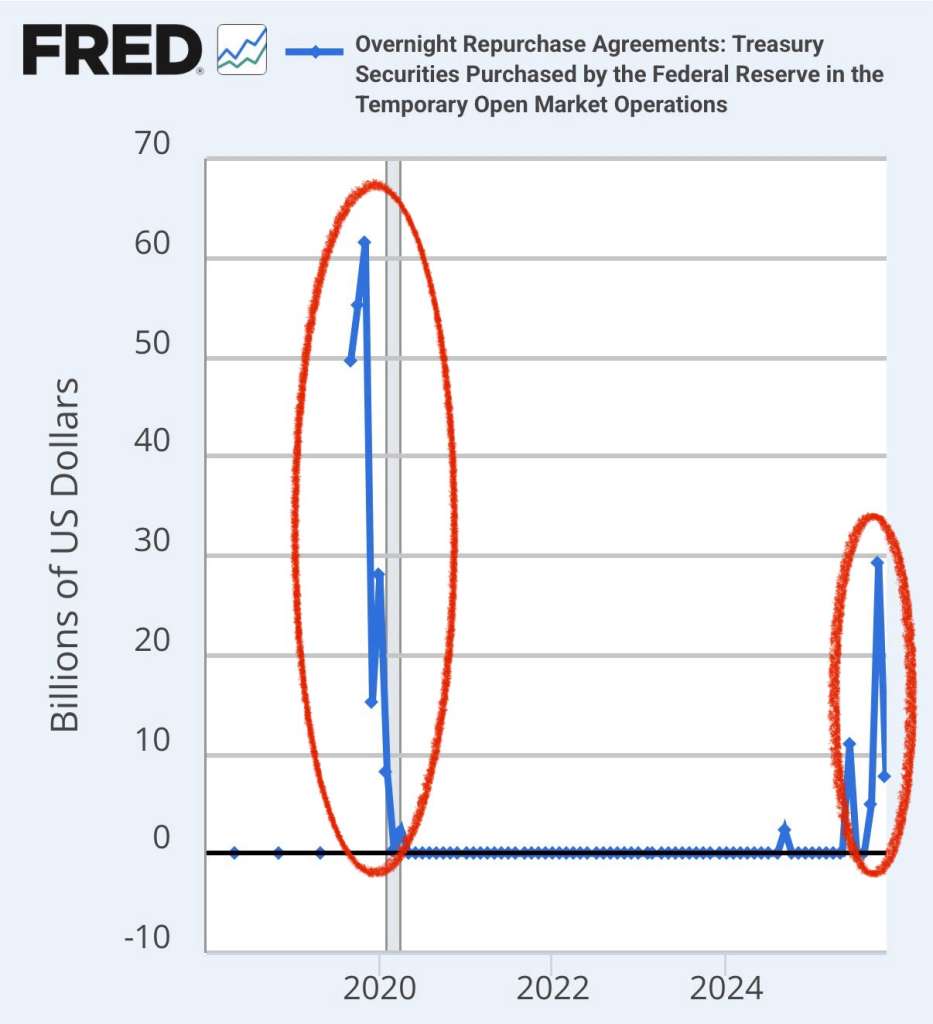 - SRF Record & Repo : l’injection de $29.4 milliards en Repo le 31 octobre, la plus importante depuis 2020, et l’utilisation du SRF confirment une tension aiguë de la liquidité bancaire.