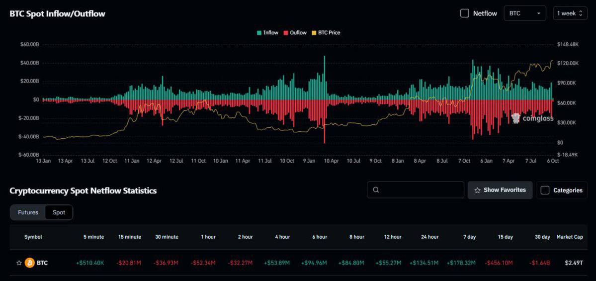 ¤ ETF Inflows (1.5×) — (+22,5 Mds$) — 4,5 Mds$ d’afflux en 1ère semaine d’Octobre (rythme record).