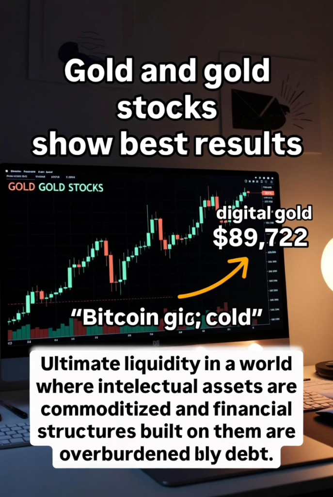Gold and gold stocks are showing the best results because they represent « ultimate liquidity » in a world where intellectual assets are commoditized and the financial structures built on them are overburdened with debt. The expected target for Bitcoin (digital gold) remains $89,722 as part of the overall flight to scarce assets.