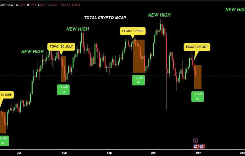 L'observation de la dynamique post-FOMC, avec la chute du Bitcoin à $106,777, est interprétée comme une purge de liquidité cyclique précédant de nouveaux sommets, alignée avec l'analyse structurelle.