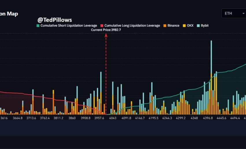 ~$6B of ETH shorts will be liquidated if the price increases by +10% (towards $4,400-$4,500)