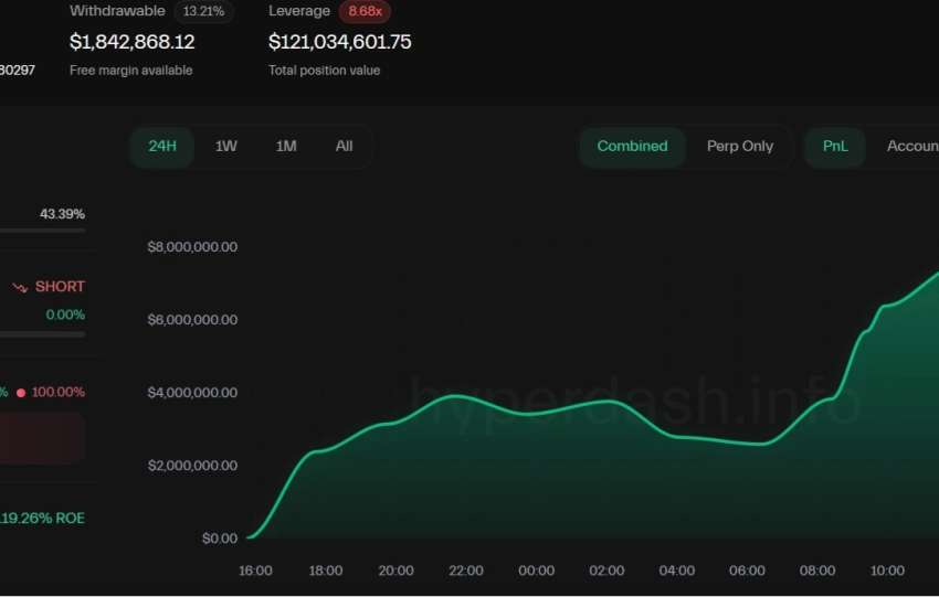 Résultats immédiats : ❶ Wallet 0x5d (Short) : $121M exposés, +$7M en 24h (levier 8.68x). ¤ Il prend des profits (profit-taking/scaling out), anticipant un rebond technique et signalant un risque de dump imminent si ses positions ferment.
