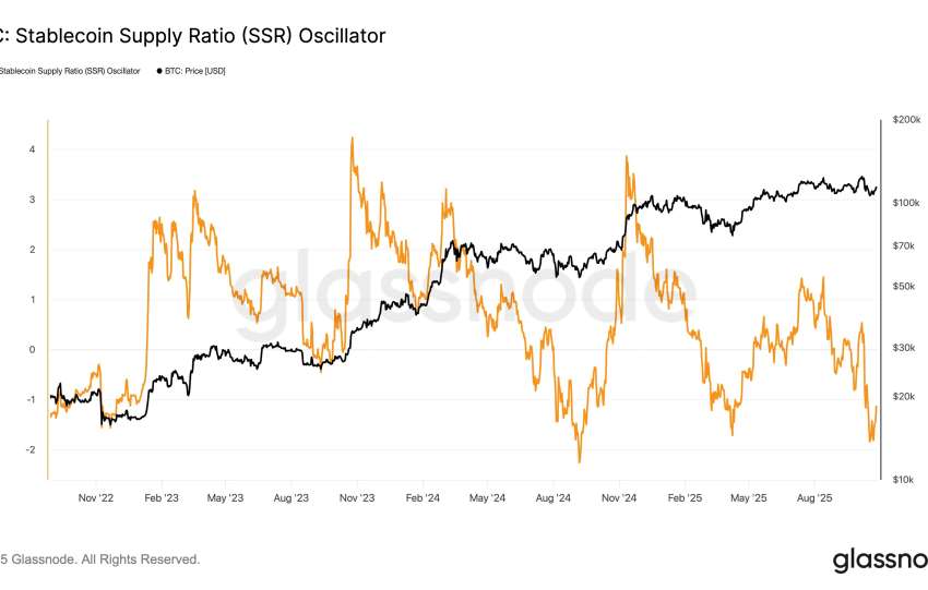L’indicateur SSR (Stablecoin Supply Ratio) à son plus bas de cycle