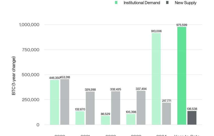 1. L'épuisement de l'offre de Bitcoin (BTC) face à une demande institutionnelle record est le moteur principal du prix.