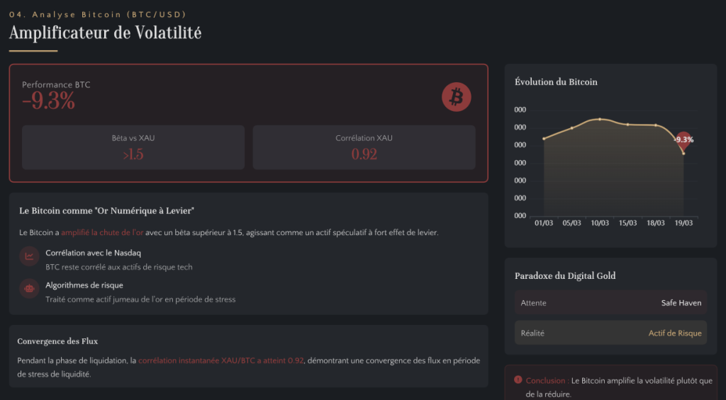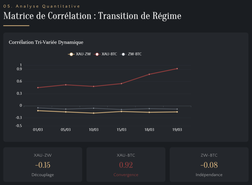 Strategic Verdict: The « Survival Triangle » is being redrawn. Wheat emerges as the only pure biological safe haven. Gold and Bitcoin, despite fundamental differences, are treated as twin assets by risk-management algorithms during liquidity shocks.