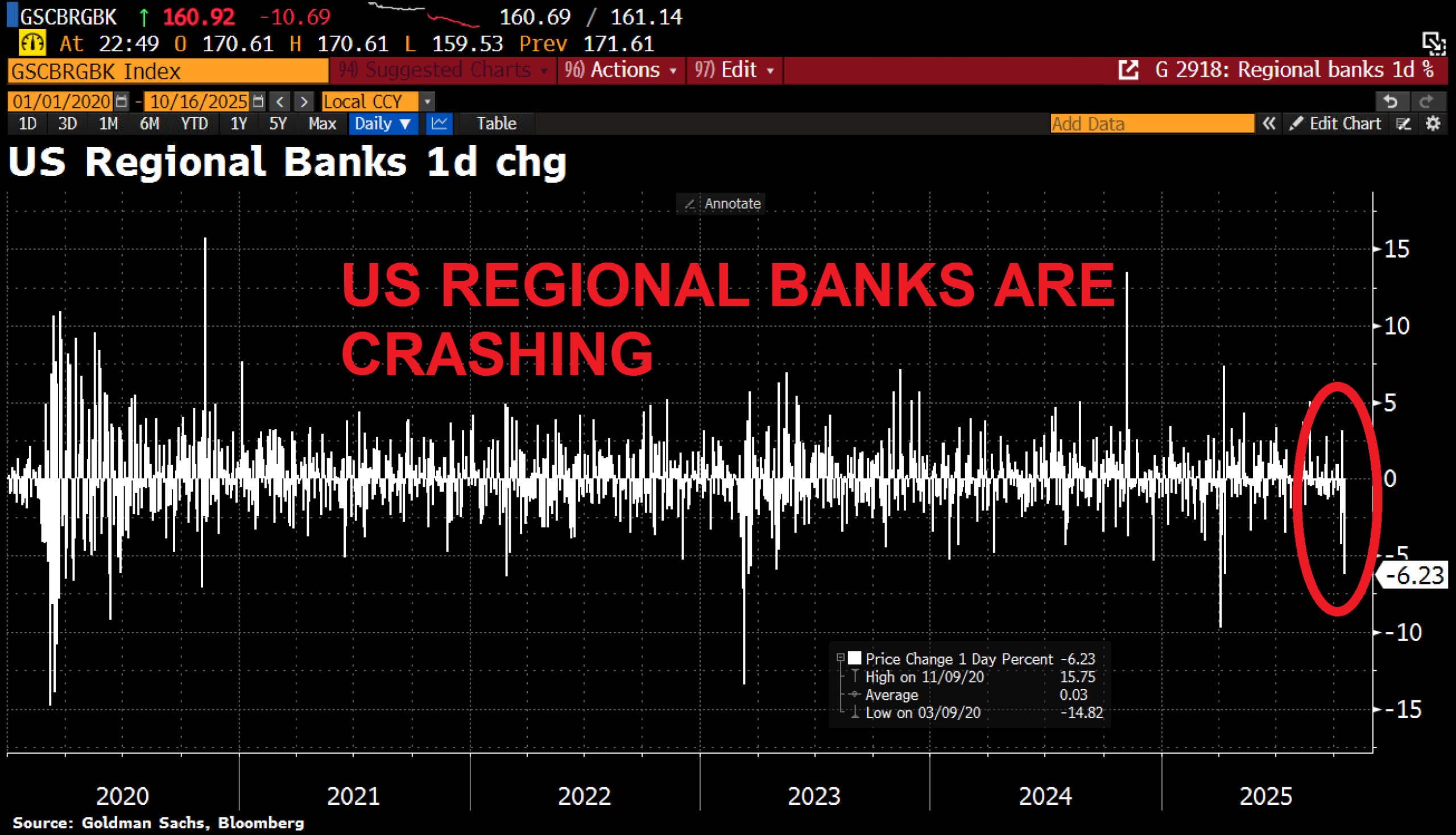Les banques régionales US présentent des vulnérabilités structurelles critiques, notamment une exposition significative au JPY Carry Trade (jusqu’à 425 Md$) et d’importantes pertes latentes sur leur portefeuille HTM (580-680 Md$, soit 35-42% du capital Tier 1). Leur dépendance à la liquidité de la Fed demeure élevée, malgré une utilisation accrue du SRF et une migration du collatéral. Le risque systémique est amplifié par la forte proportion de dépôts non assurés (42-48%), suscitant un risque de fuite important en cas de stress médiatisé. Dans un scénario modéré (55% de probabilité), 3 à 5 banques régionales seraient sous pression, entraînant des sorties de dépôts de 5-8% et une chute des cours de 40-55%. L’intervention de la FDIC mènerait à des fusions forcées orchestrées par de grandes banques. Cet épisode impacterait le secteur avec un déclin de -25% à -35% de l’ETF KRE et une réduction du crédit de 50-80 Md$, provoquant un ralentissement du PIB de -0,3% à -0,5% sur 2-3 trimestres.